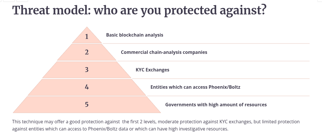 Temporal analysis: If transactions occur in quick succession (send to Phoenix → Boltz swap), temporal analysis could correlate the transactions, especially if the amounts are similar or identical. For this reason is strongly important to care this aspect.