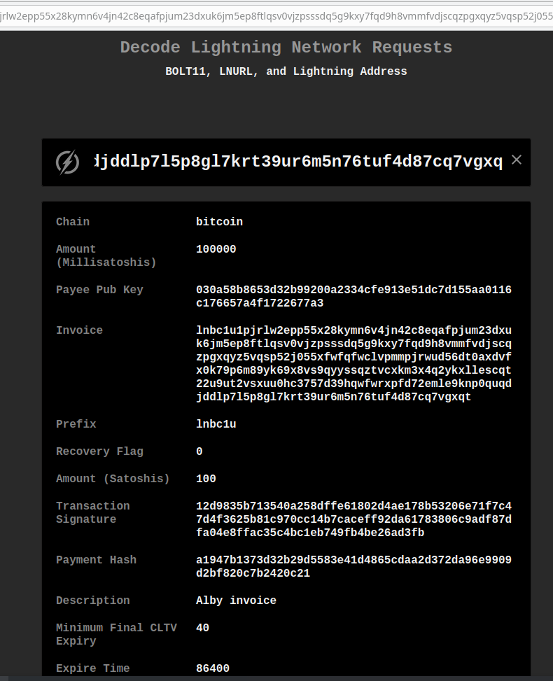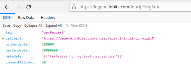 So as you can see, decoding a LNURL you get actually an URL. If you go to that URL you get: